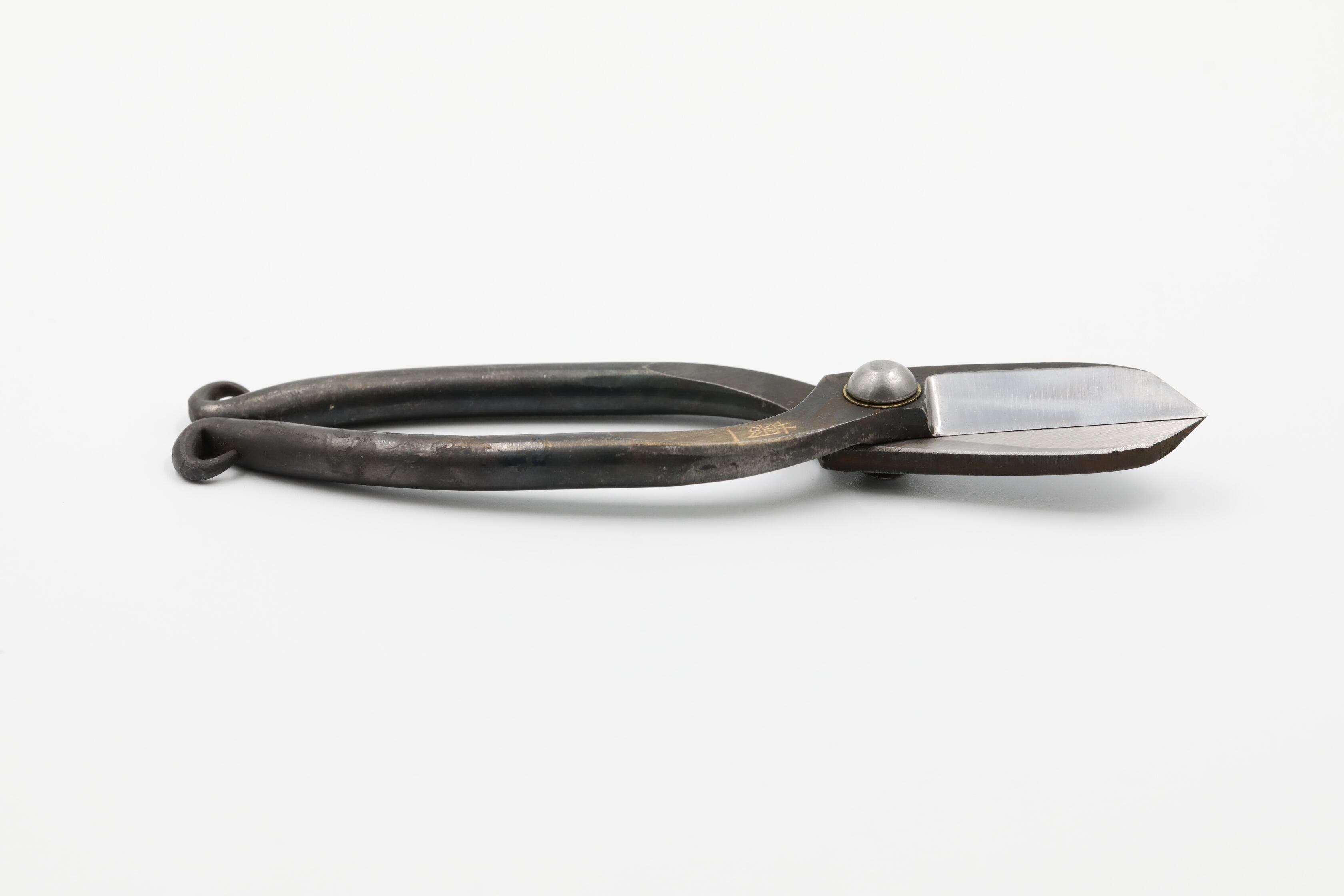 池坊流の花鋏でその形から “わらび” とも呼ばれます。昔ながらの鋼でできた花鋏です。切れ味が落ちてきたら砥ぐことができます。